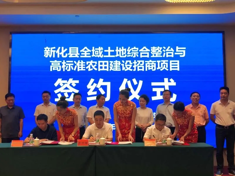 9月14日上午,“新化县乡村振兴专家座谈会暨全域土地综合整治与高标准农田建设”招商引资项目合同签约仪式在新化隆重举行。新化县委副书记、县长左志峰主持签约仪式,国内农业领域各知名专家、市直相关部门、市创业发展集团、新化县委县政府及县直部门主要负责人出席签约仪式。创发集团董事长刘建、总经理阳文林与新化县委书记朱前明、新化县委副书记、县长左志峰、县委副书记周海强、全国人大代表、湖南省知识分子联谊会会长、湖南省战略咨询委员会委员、中国科学院大学农学院副院长、中科院亚热带农业生态所首席研究员吴金水、首都金融服务商会监事长孙莉、市农发行行长袁军民、市农业农村局总农艺师唐正伟共同见证了市创发集团文旅投公司和长沙路桥组成的联合体与新化县政府的签约过程。本次活动的举办,标志着新化县全域土地整治与高标准农田建设项目正式进入实施阶段。